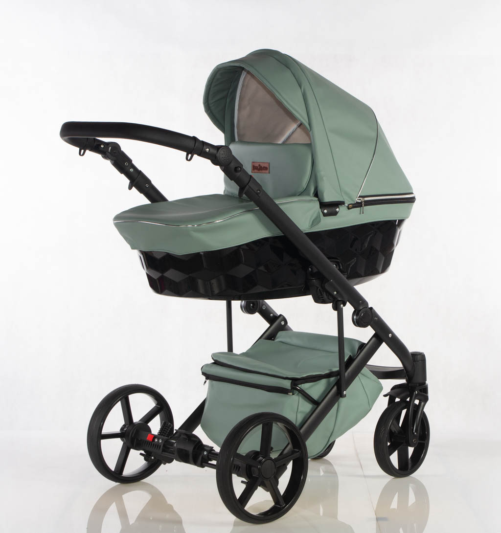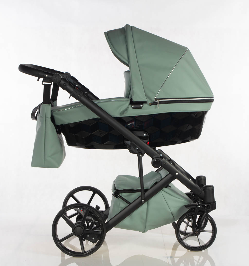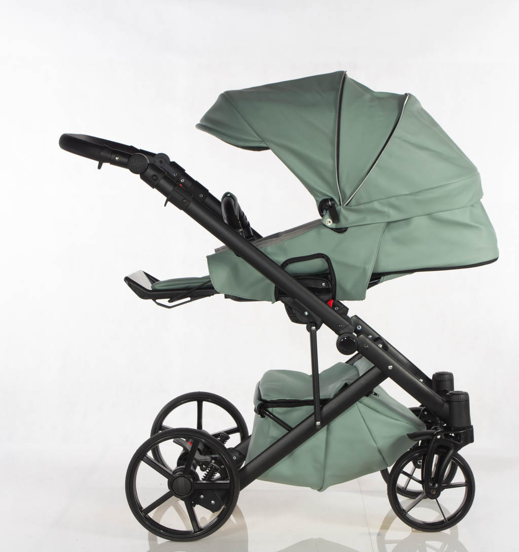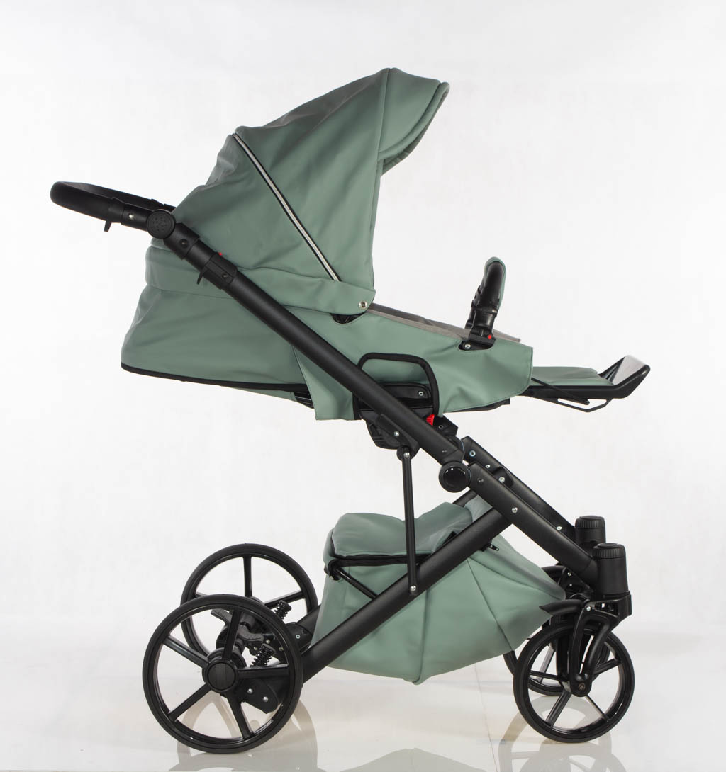 Wielofunkcyjny wózek głęboko-spacerowy wykonany z eko skóry z fotelikiem samochodowym.